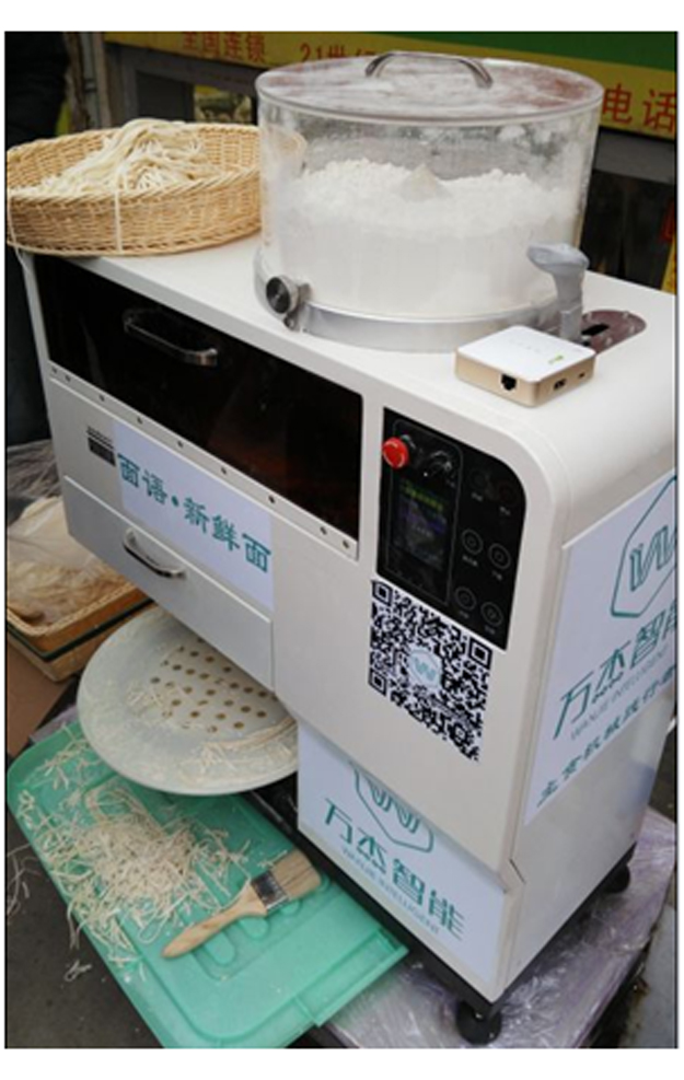 就口感與新鮮度而言,萬杰智能鮮面機獨特創新工藝,使得鮮面條具有手工面“勁道、順滑”的口感。從原料到成品的制作過程,短短只需要8秒鐘,與市面上那些“超級勁道”、“保質期超長”的面條相比,更讓人買的放心,吃的安心。