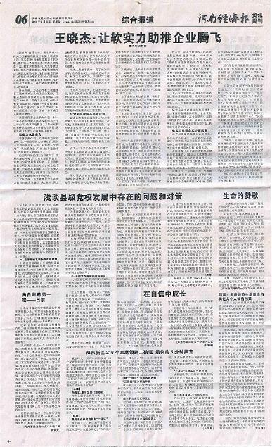 當前位置: 首頁 新聞資訊 公司動態 王曉杰:讓軟實力助推企業騰飛---------轉載自河南經濟報
