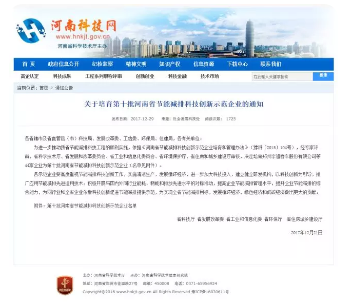 關于培育第十批河南省節能減排科技創新示范企業的通知 (原文鏈接)