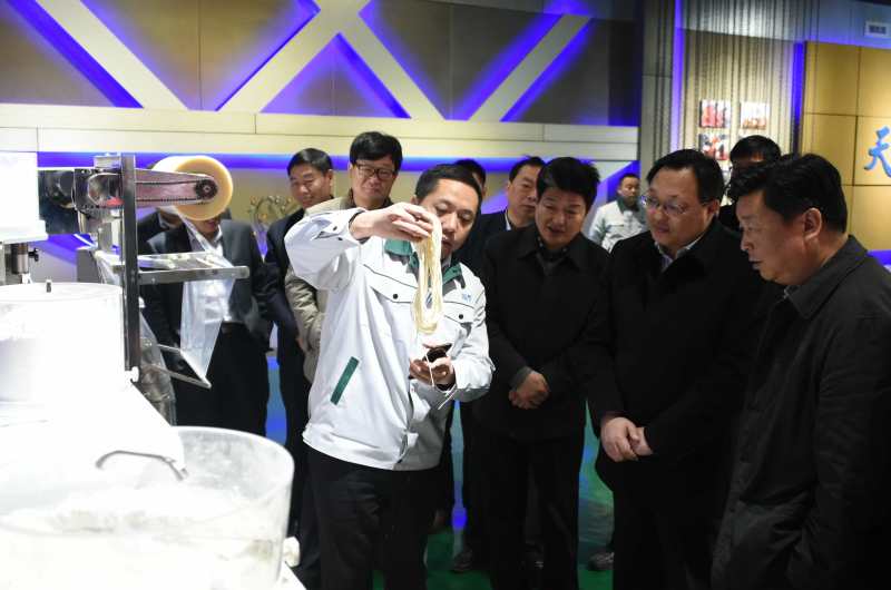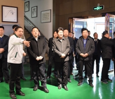 許昌市統戰部部長劉保新與襄城縣縣長李成一行在董事長王曉杰陪同下參觀公司展廳,詳細了解了公司的產品機構和企業文化,特別是在公司展廳了解到高端制面機項目的總體規劃和發展成績后對萬杰智能的發展表示高度贊揚。