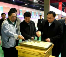 許昌市統戰部部長劉保新與襄城縣縣長李成一行品嘗包子
